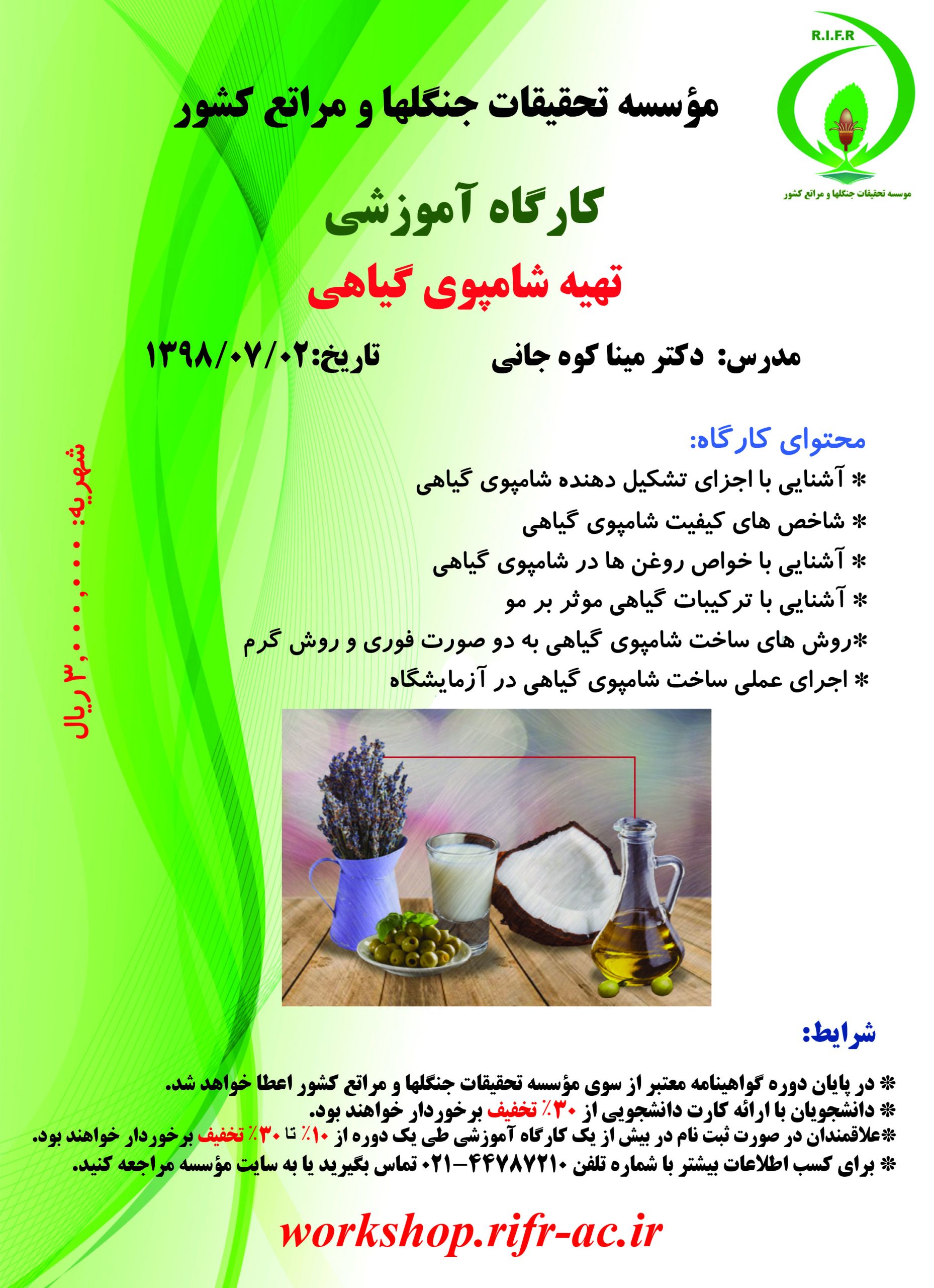 تهیه شامپوی گیاهی (تاریخ برگزاری: ۱۳۹۸/۰۷/۰۲)